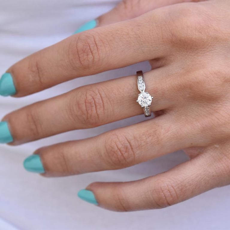 • den zentralen Moissaniten ergänzen 8 seitliche Diamanten, die in den Ring eingelassen sind