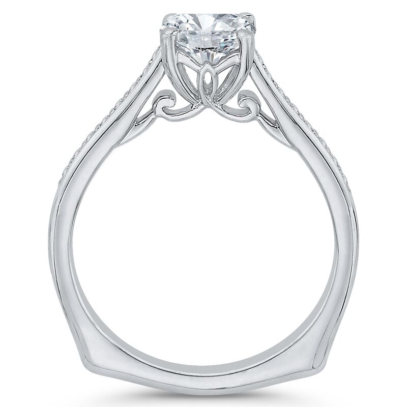 • dem Ring dominiert der glitzernde Moissanit, der eingehüllt ist in eine Aura aus Diamanten und gekrönt wird von den fantasievollen Formen der ornamentellen Ringschiene