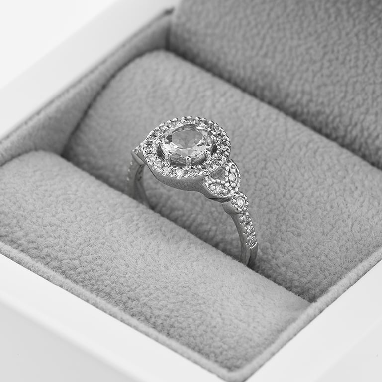 • der Ring ist mit dem Moissanit und dreisig lab-grown Diamanten besetzt, mit denen Sie bei der Verlobung strahlen werden