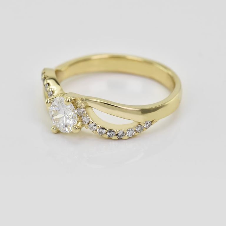 • eleganter Ring mit einem funkelnden Moissaniten und 18 seitlichen Lab Grown Diamanten