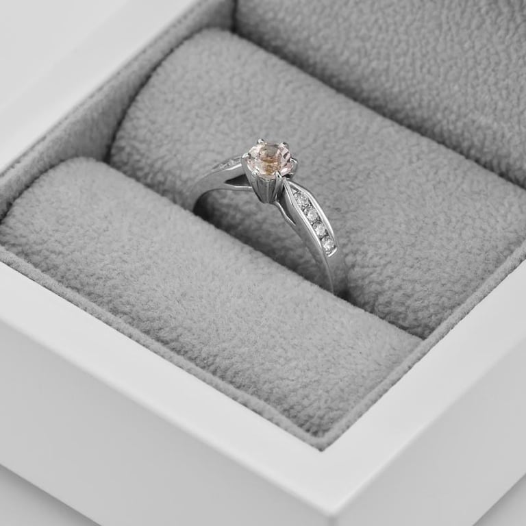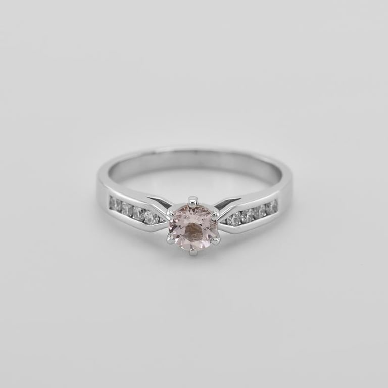 • der Ring mit einem rosa Morganit umgeben von einer Ringschiene mit Diamanten ist so ein Juwel