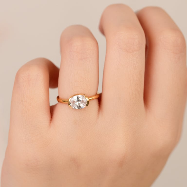 • besetzt mit einem ovalen Lab Grown Diamanten