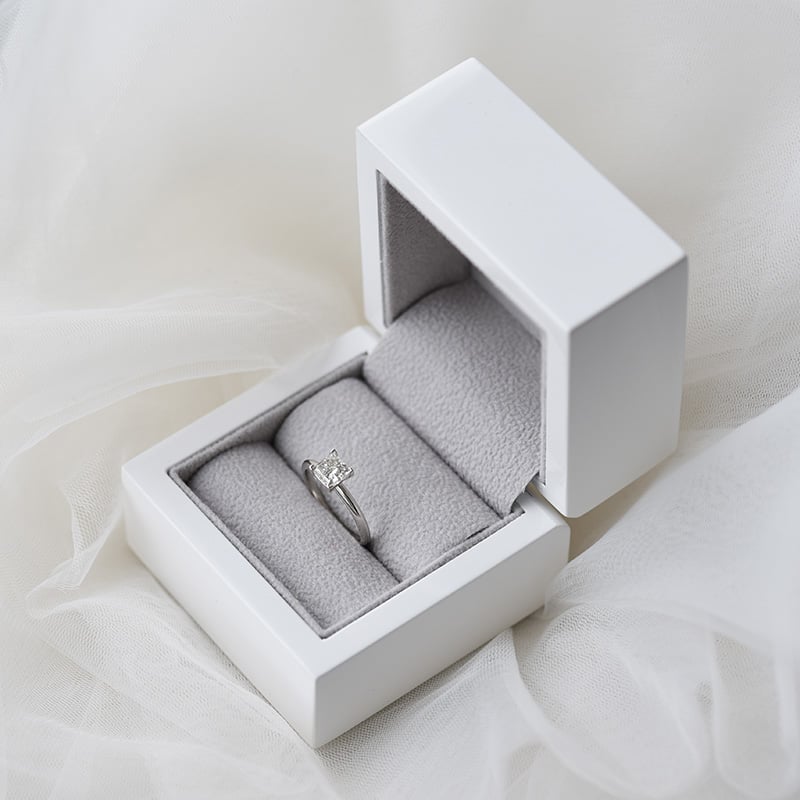 • die Ecken des Diamanten sind durch die rechteckige Krappenfassung perfekt geschützt