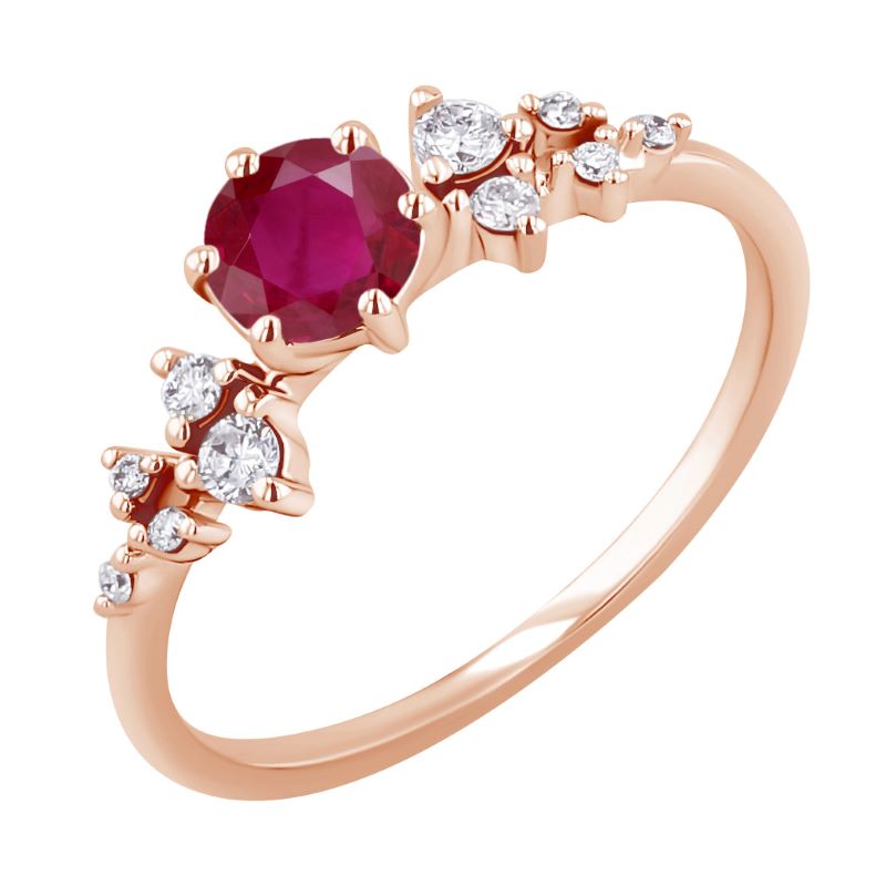 • ein Verlobungsring mit feuerrotem, natürlichem Rubin und funkelnden Diamanten, der Leidenschaft ausstrahlt