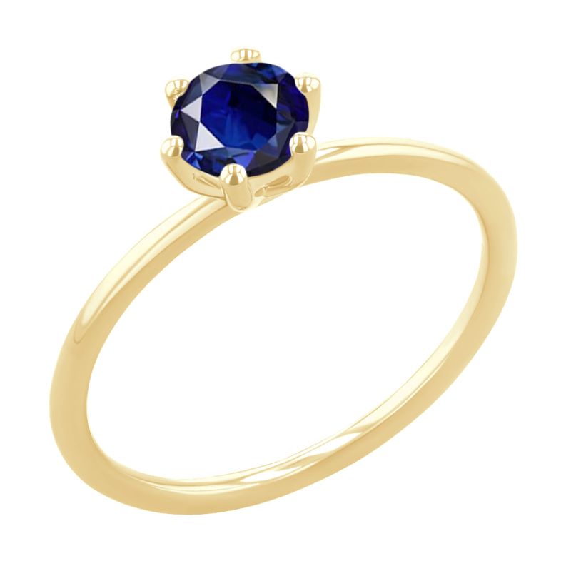• Verlobungsring mit einem runden Saphir in tiefblauem Farbton