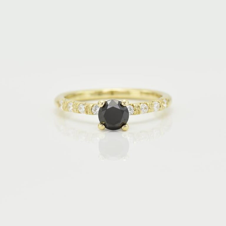 • goldener Verlobungsring mit wunderschönen kontrastierenden Diamanten