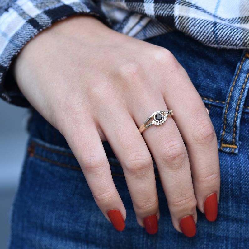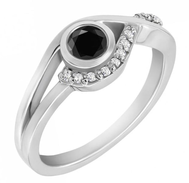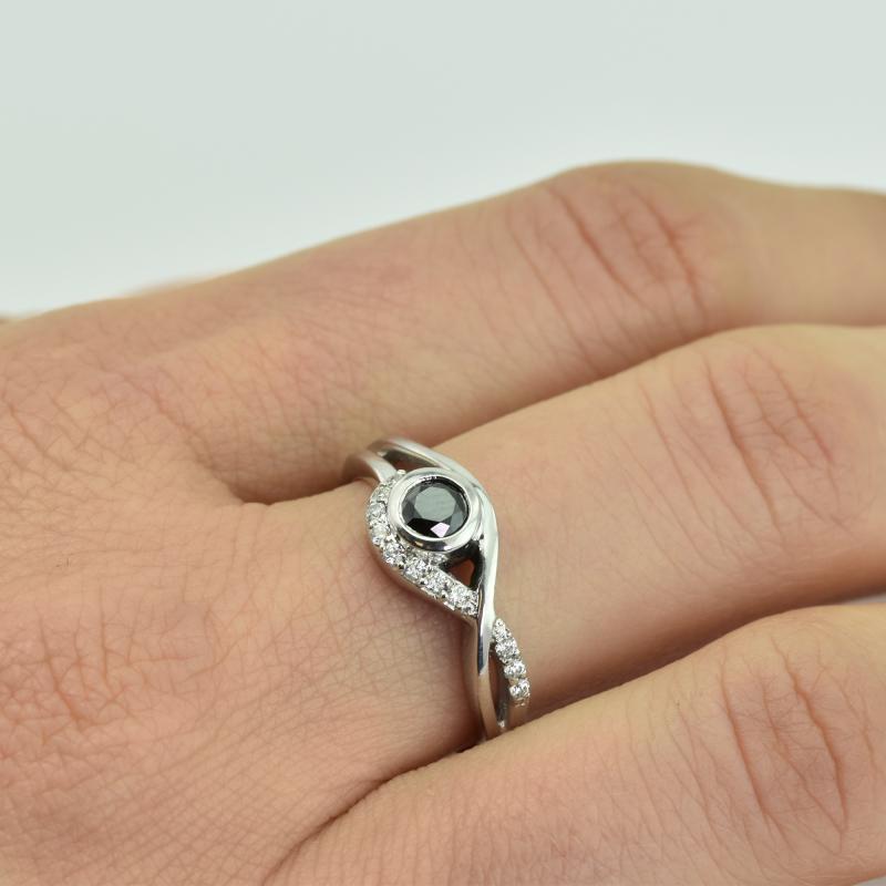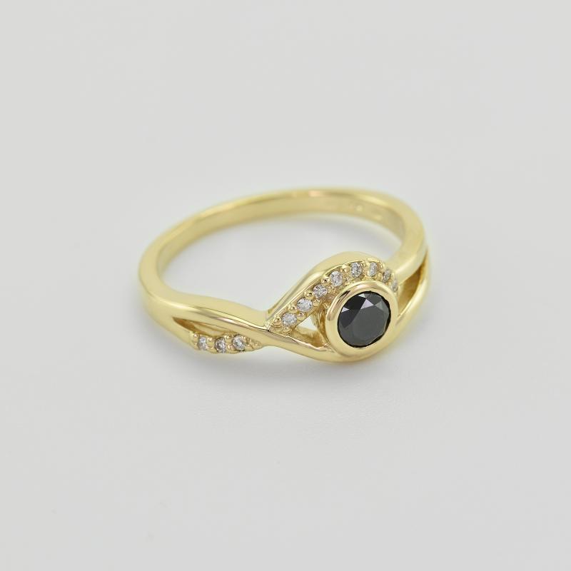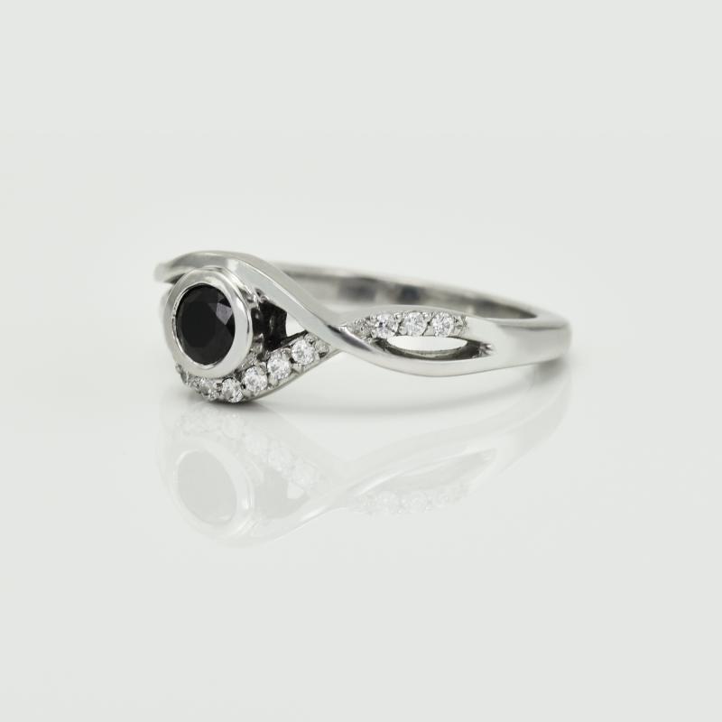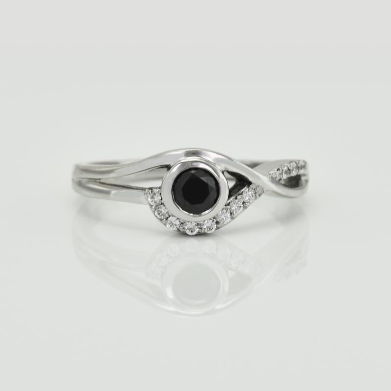 Verlobungsring mit schwarzem Diamanten und Diamanten Milia