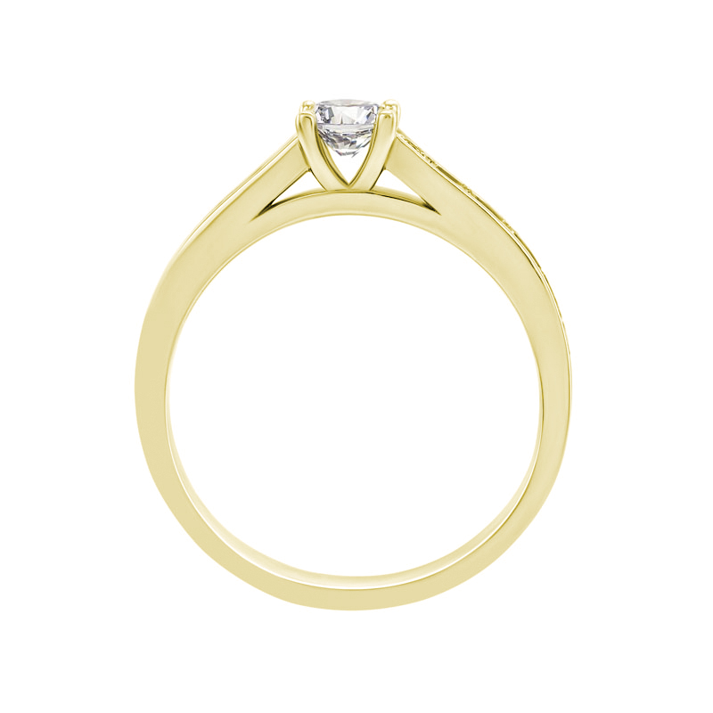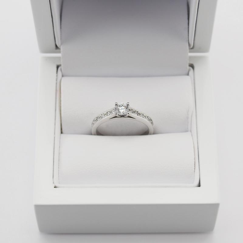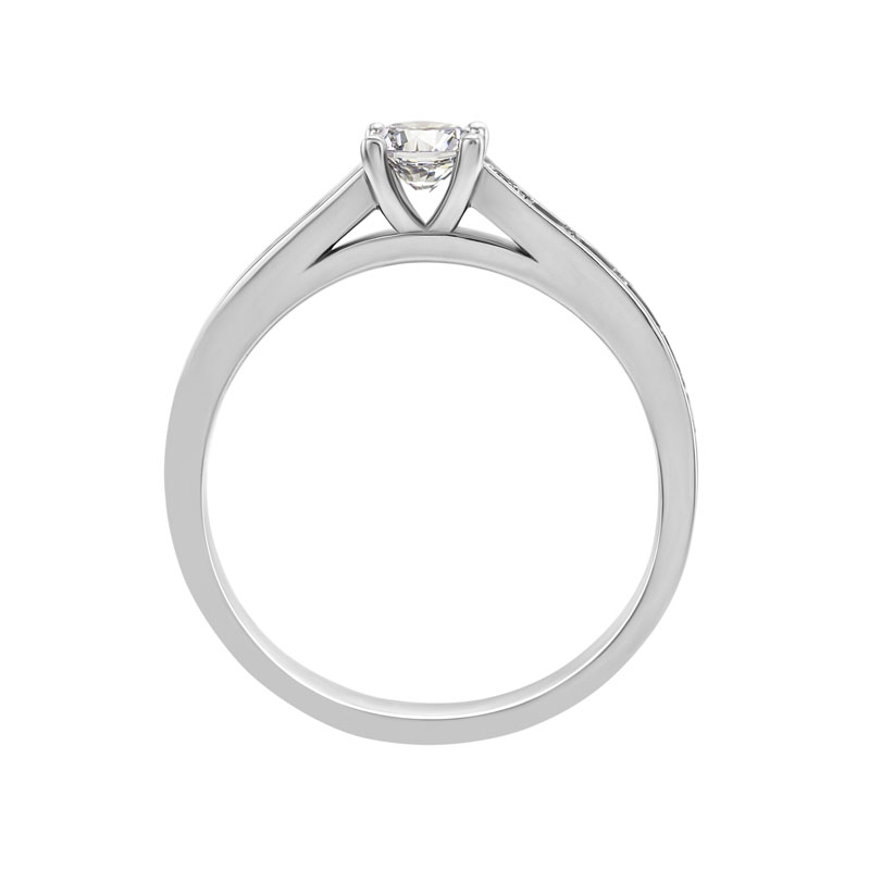 • der runde Diamant in der Mitte wird von einer Ringschiene mit Diamanten eingerahmt