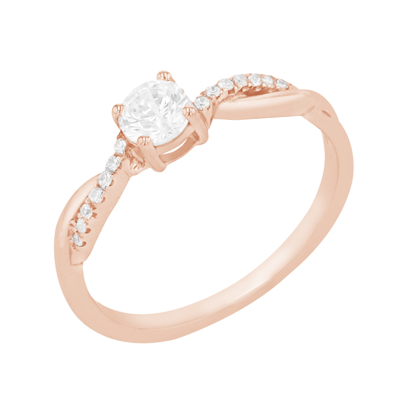 • klassischer Verlobungsring mit zentralem Diamanten, der von 14 seitlichen Diamanten auf der geflochtenen Ringschiene begleitet wird