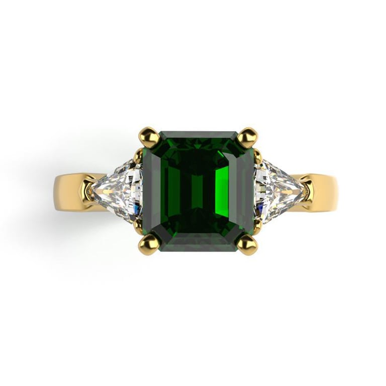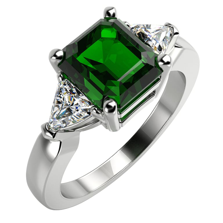 • der zentrale Smaragd ist mit seitlichen Dreiecken aus Diamanten dekoriert