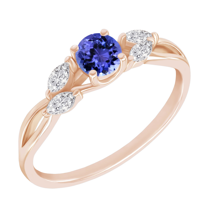 Verlobungsring mit Tansanit und Lab Grown Diamanten in Marquise Form Haly