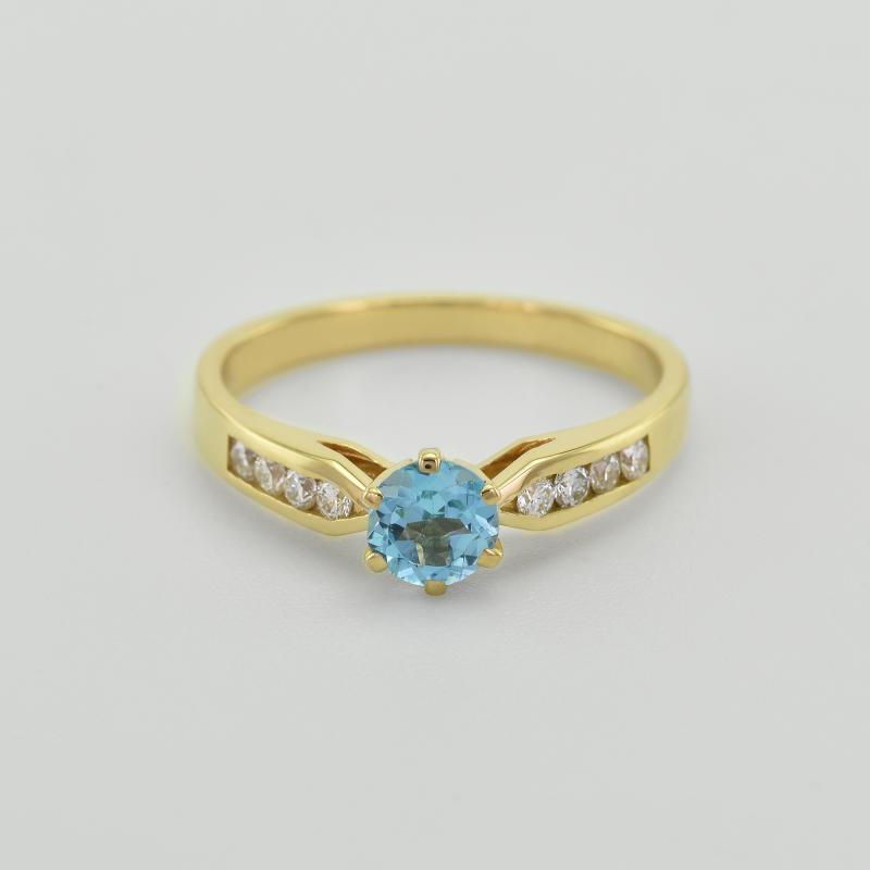 • die strahlend blaue Farbe wird durch das sonnige Gold betont, in welches funkelnde Diamanten eingesetzt sind