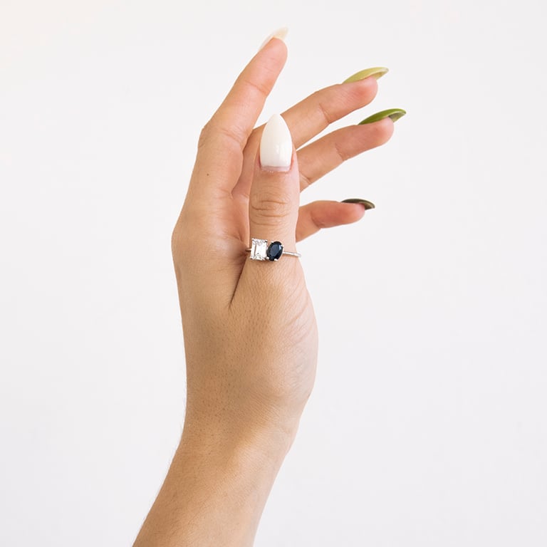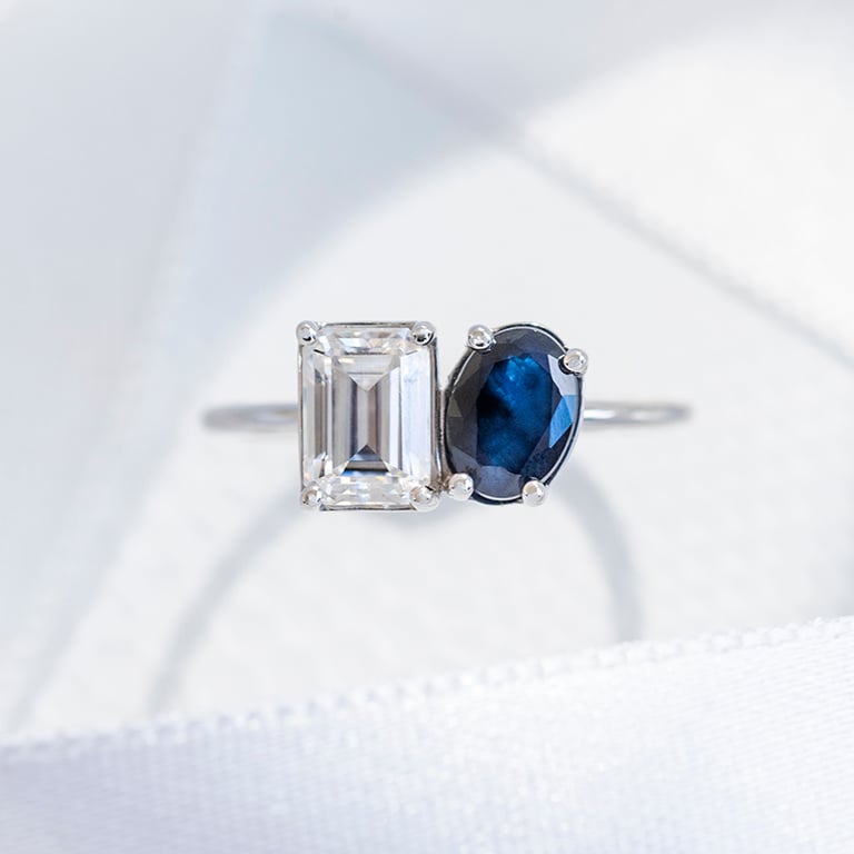 Verlobungsring Toi et Moi mit Saphir und Moissanit Hartley