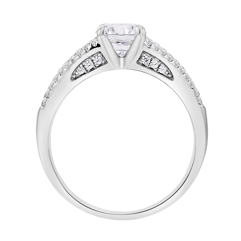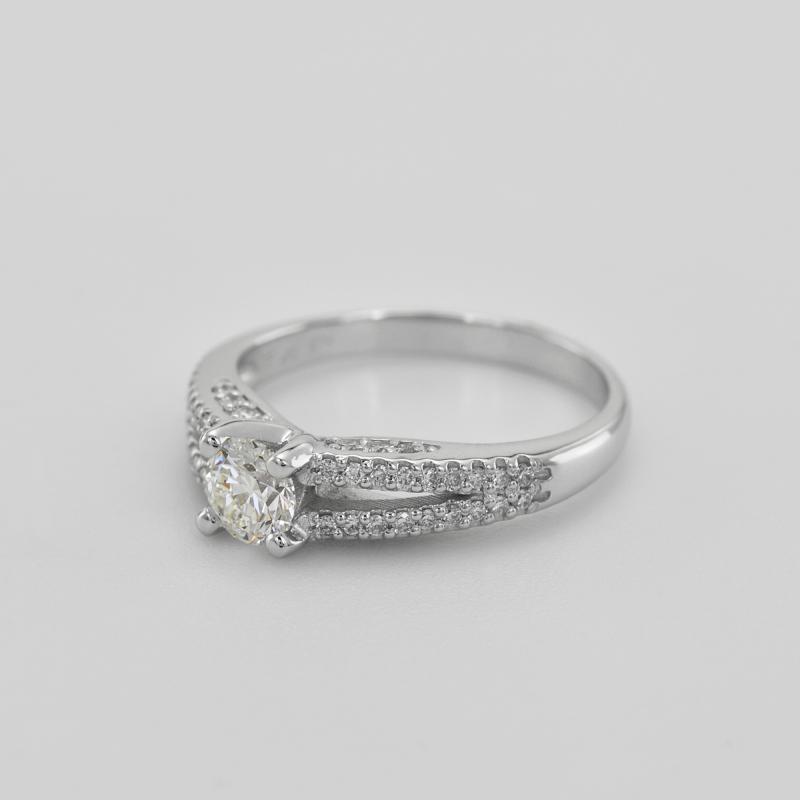 • der Ring in Weißgold beeindruckt mit einem großen zentralen Diamanten und etlichen Seitendiamanten