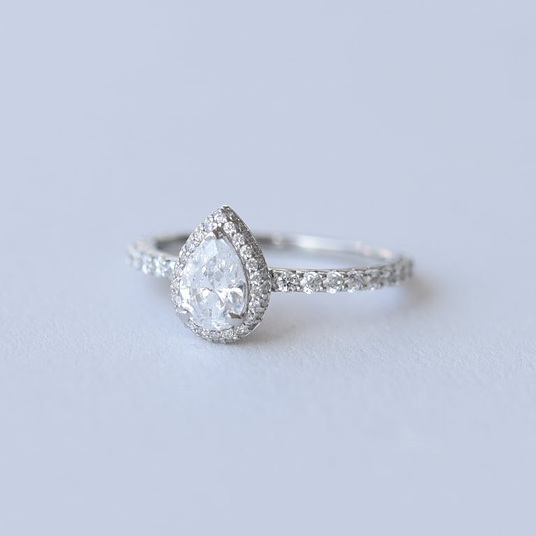 Verlobungsring voller Diamanten in Tropfenform Savanna
