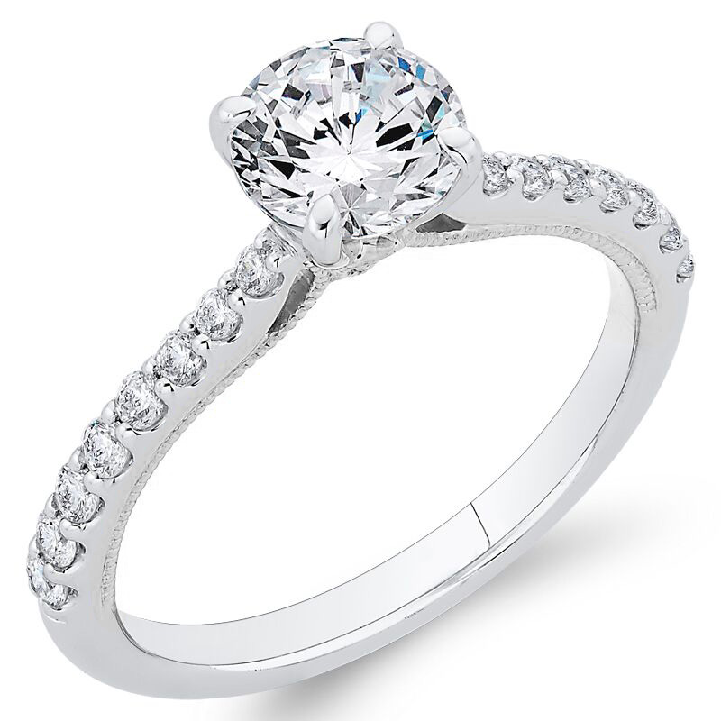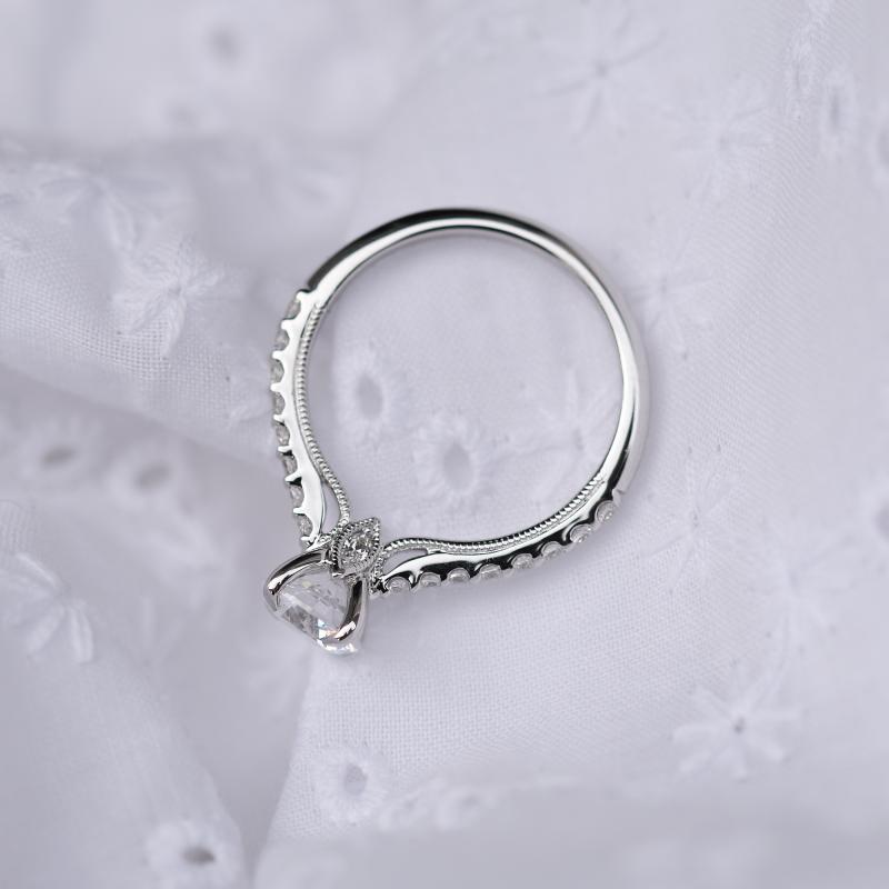 • der Ring hat eine diamantbesetzte Ringschiene die einen Diamanten in der Mitte hat