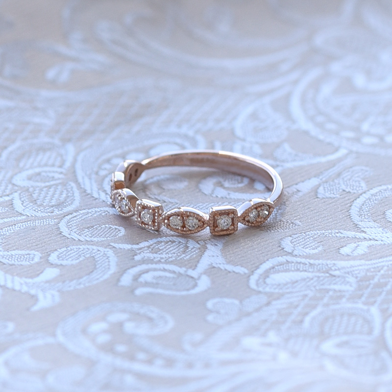 • sehr aparte Eheringe mit einem klassischen Ring und einem zarten Ring mit weißen Diamanten
