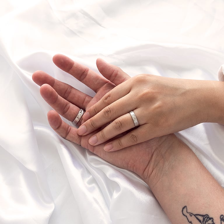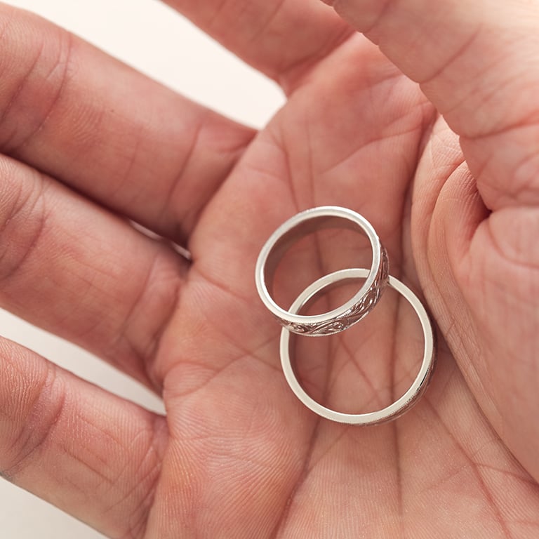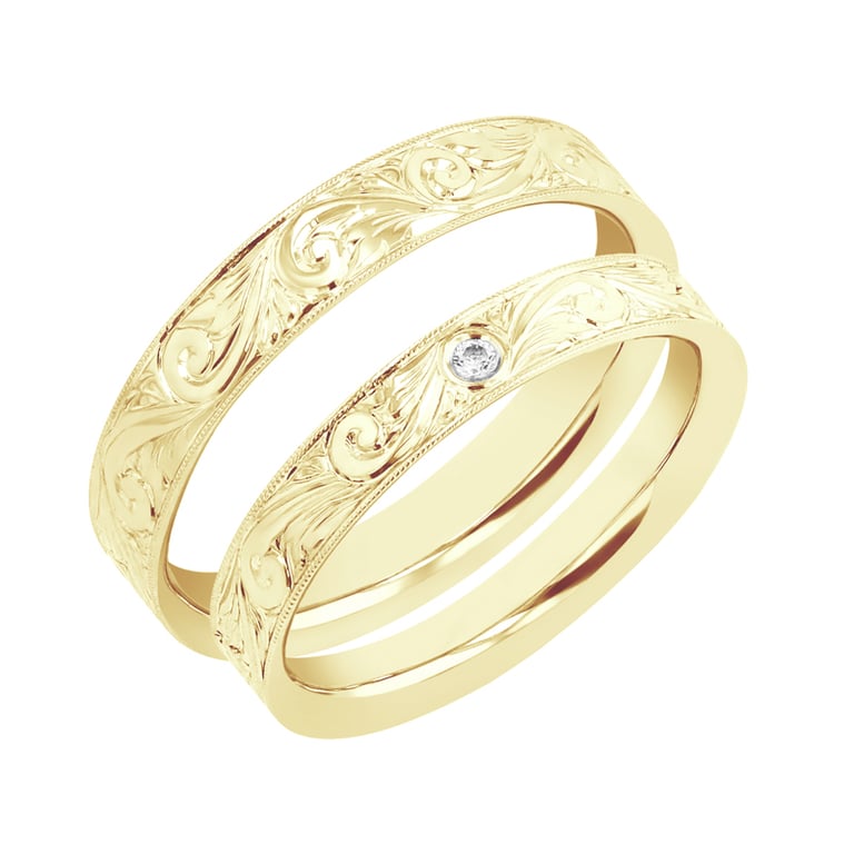 • beide Ringe schmückt eine Vintage-Gravur