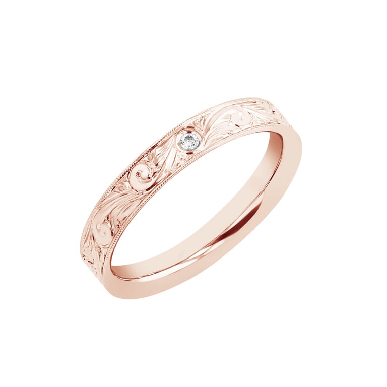 Vintage Eheringe mit Gravur und einem Diamanten Denton