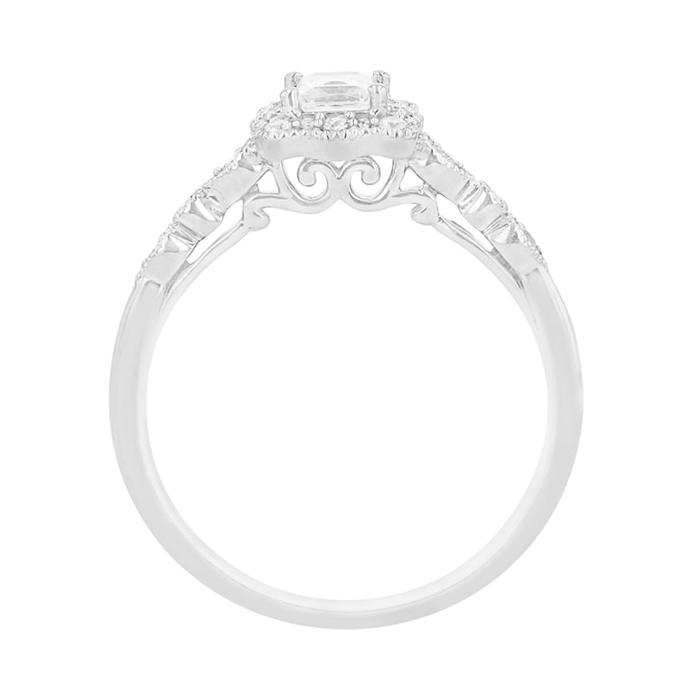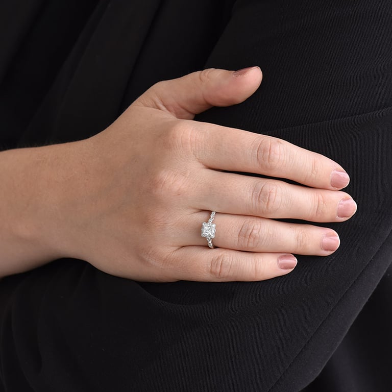 • atypisches Design, das an eine Spitze erinnert, und das von einem perfekten Diamanten in Princess-Form dominiert wird