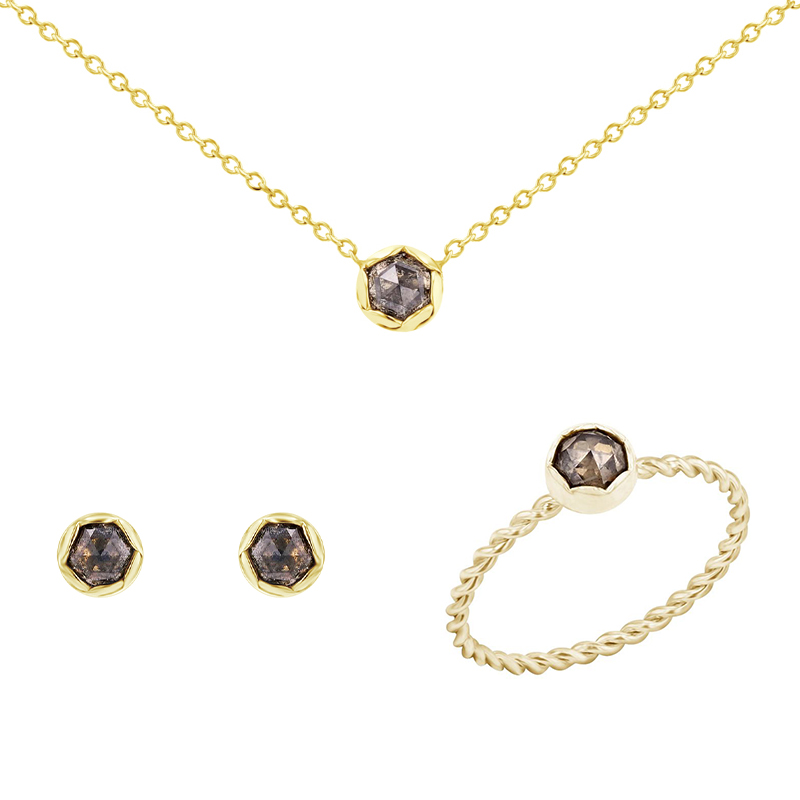 • die Salt and Pepper Diamanten sind im historischen Rosettenschliff