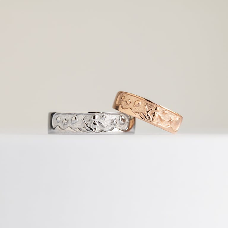 • diese einzigartigen Eheringe stellen die tiefgründige und poetische Geschichte des Kleinen Prinzen dar