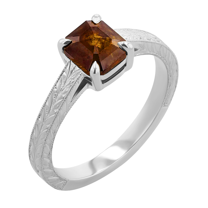 Von Hand gravierter Ring mit einem Salt and Pepper Diamanten in Emeraldschliff Arlena