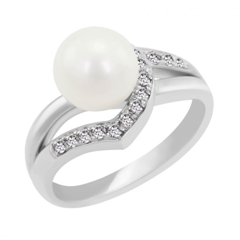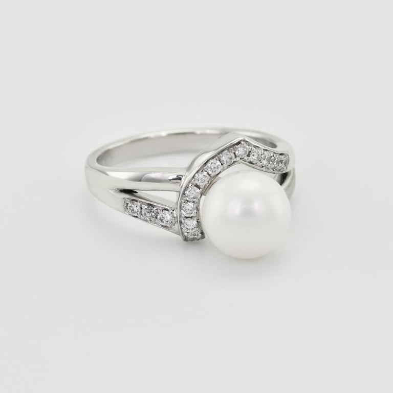 • Weißgoldring mit strahlend weißer Perle und Diamanten