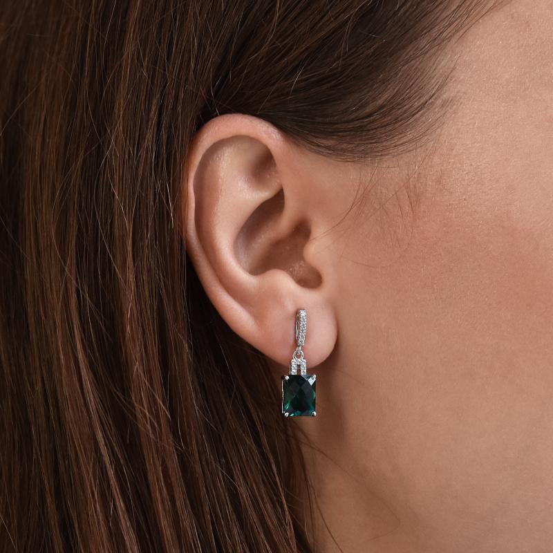 • die Ohrringe sind mit Topasen und strahlenden Smaragden in grüner Farbe geschmückt