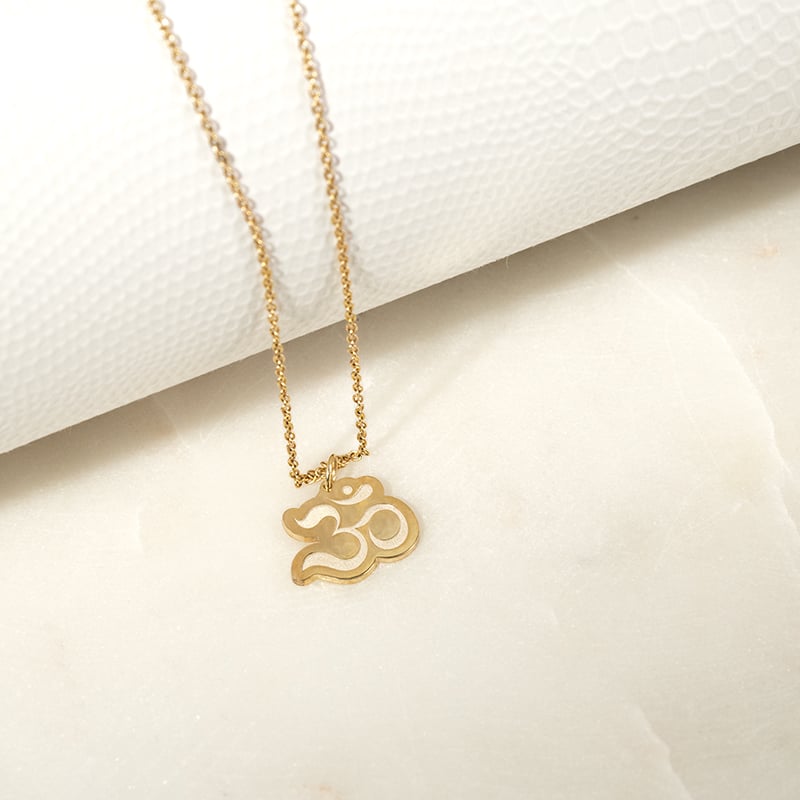 • ein einzigartiges Modell aus recyceltem Gold oder Platin mit einem Anhänger mit der heiligen Silbe Om