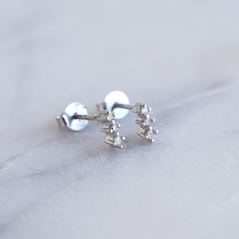 • jeder Ohrring funkelt dezent durch ein Trio runder natürlicher Diamanten