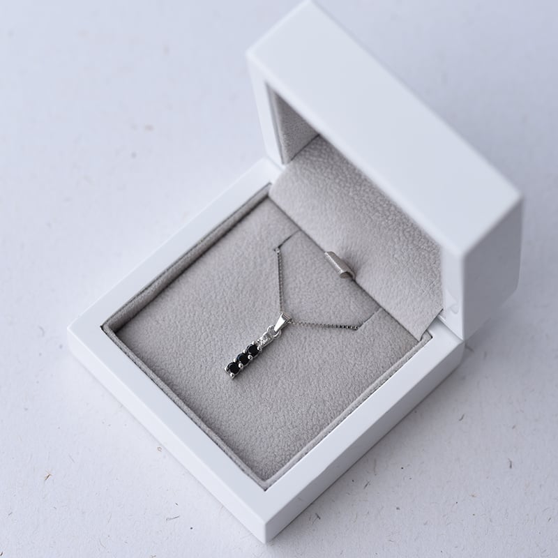 • zarter silberner Anhänger mit drei schwarzen Onyxen