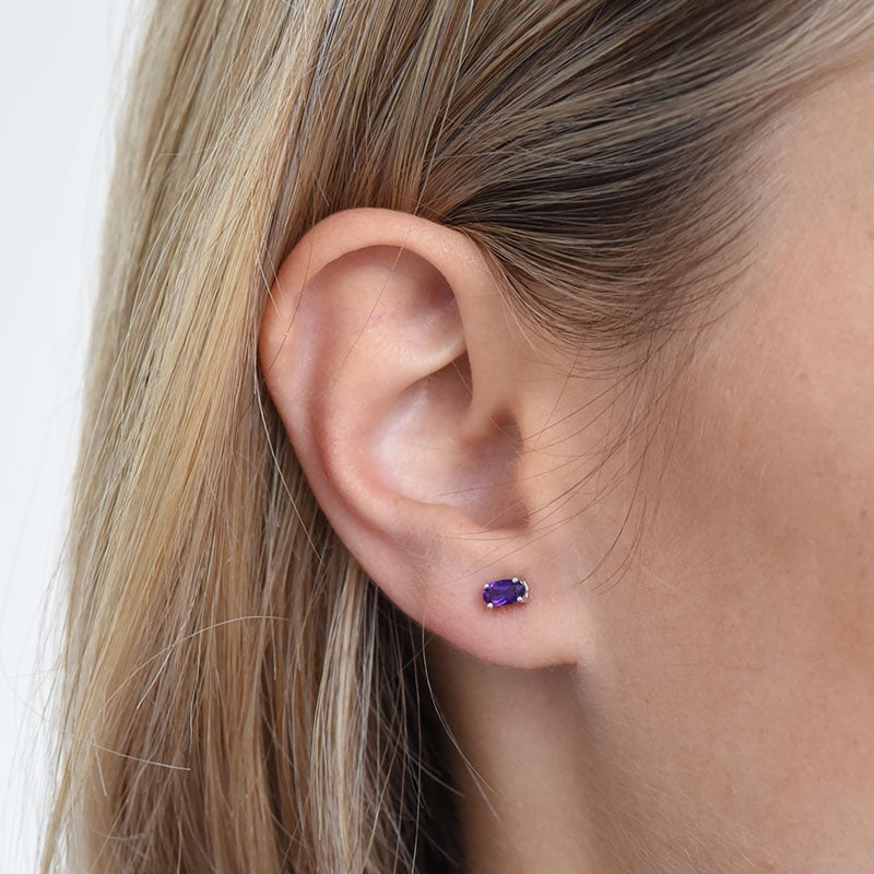 • dezente silberne Ohrringe mit Amethysten in ovaler Form