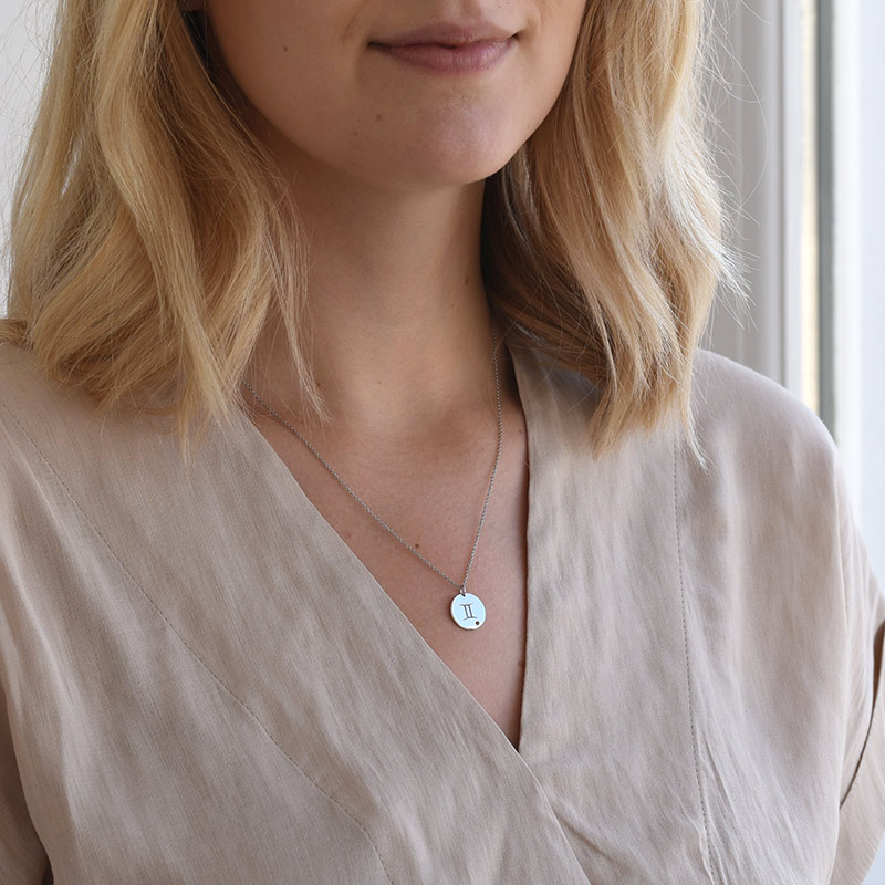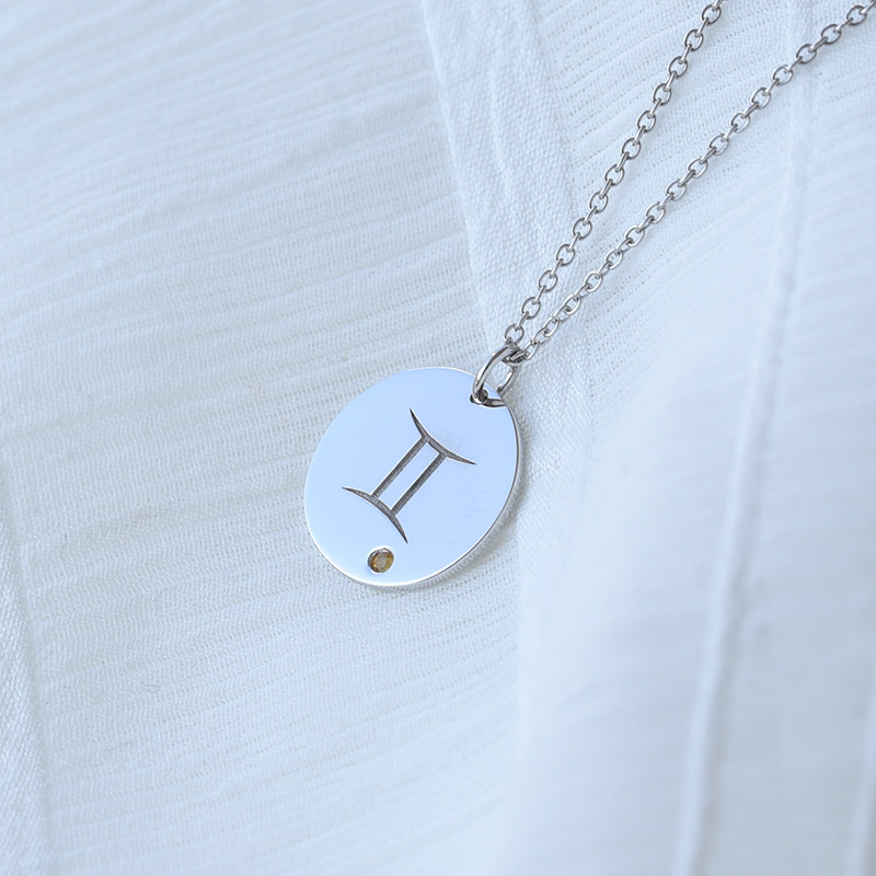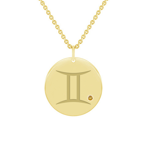 Zarter Anhänger aus Gold mit Citrin und Sternzeichen Zwillinge