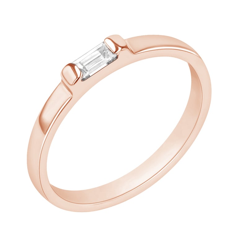 • verziert mit einem funkelnden Moissaniten in einer schmalen, länglichen Baguette-Form