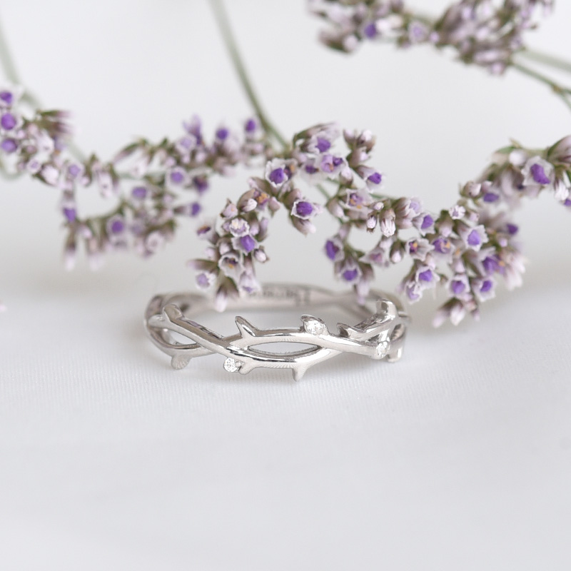 Zarter Ring mit einem Zweiglein und Lab Grown Diamanten Hamana