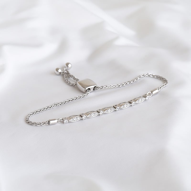 • ein zartes Armband mit 21 durchsichtigen Diamanten