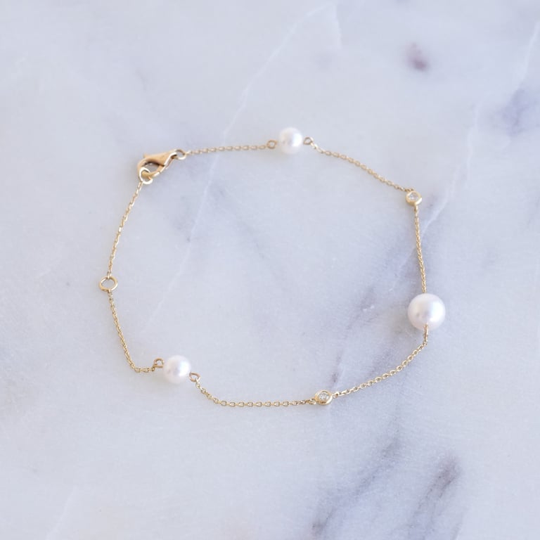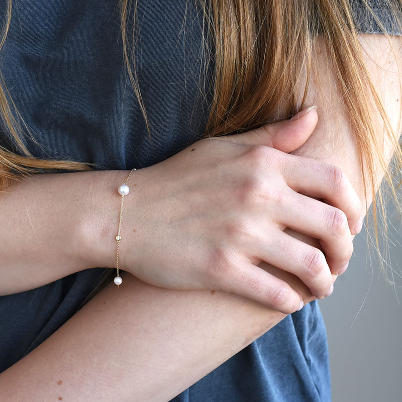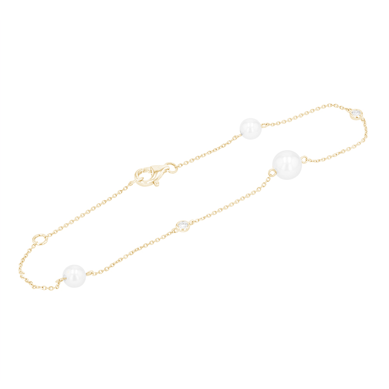 • die schmale Kette wird raffiniert von drei weißen Perlen und zwei weißen Diamanten geschmückt