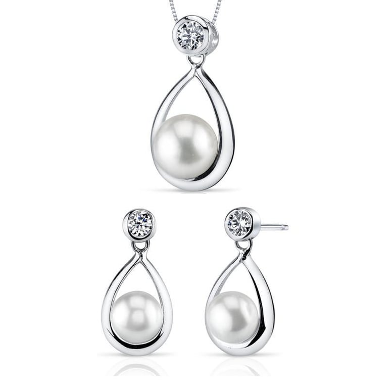 Zartes Schmuckset aus Silber mit Perlen und Zirkonia