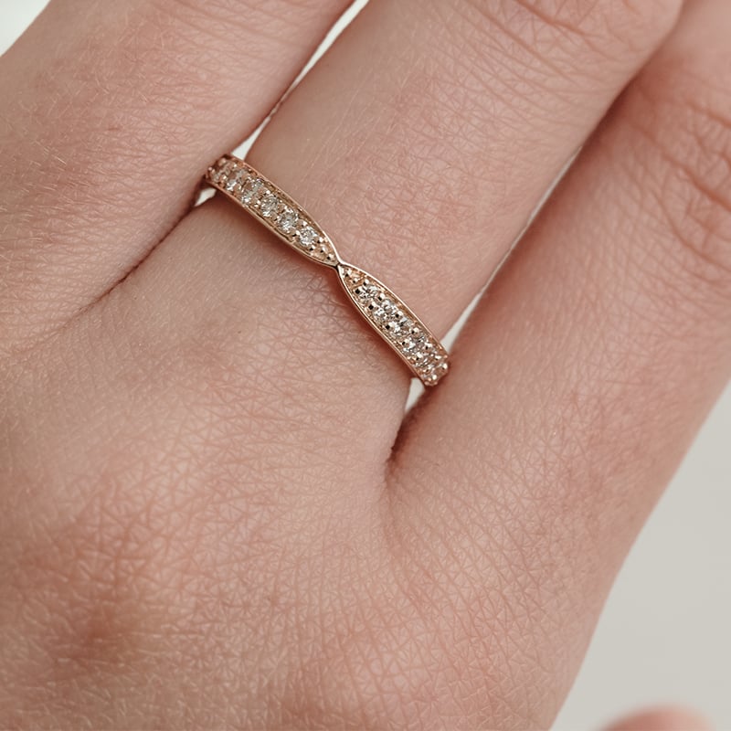 • das schmale Modell verengt sich in der Mitte und wird von 14 Lab Grown Diamanten geschmückt