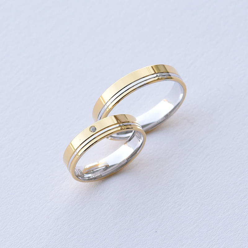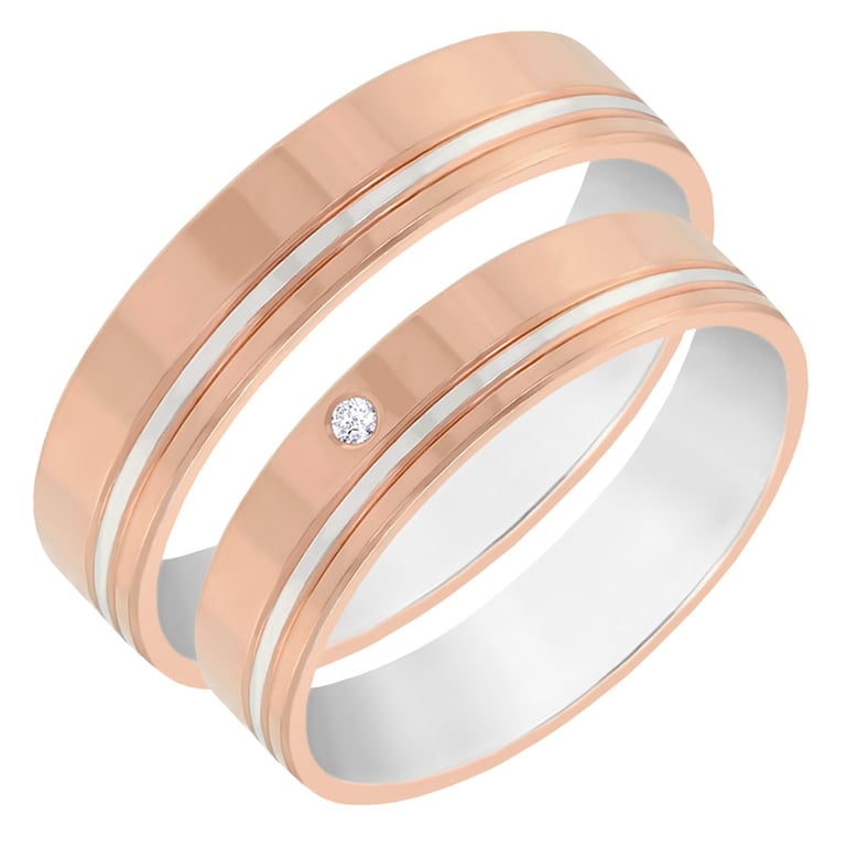 Zweifarbige Eheringe aus Gold mit Diamant Lonnell