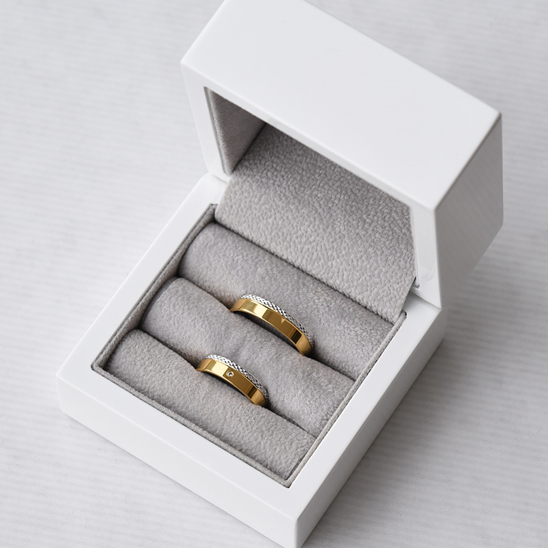 • elegante Ringe aus kombiniertem Gold werden Paare schätzen die luxuriöse Zeitlosigkeit bevorzugen