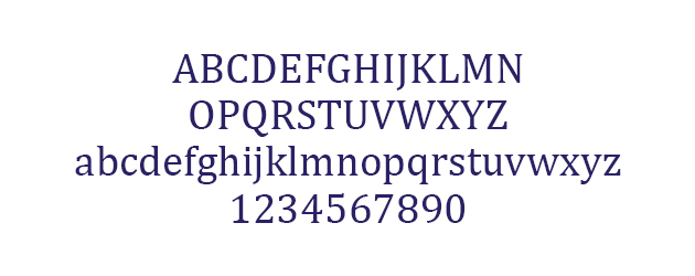 Eine klassische Serifenschrift (Serifen sind die Anfangs- und Endstriche bei den Buchstaben), die in allen Bereichen - von der Digitaltechnik bis zum Schmuck - weit verbreitet ist. Es handelt sich um eine gut sichtbare, aber dennoch subtile Schrift. Deshalb ist sie eine ausgezeichnete Wahl für diejenigen, die einen einfachen und konservativen Stil bevorzugen.