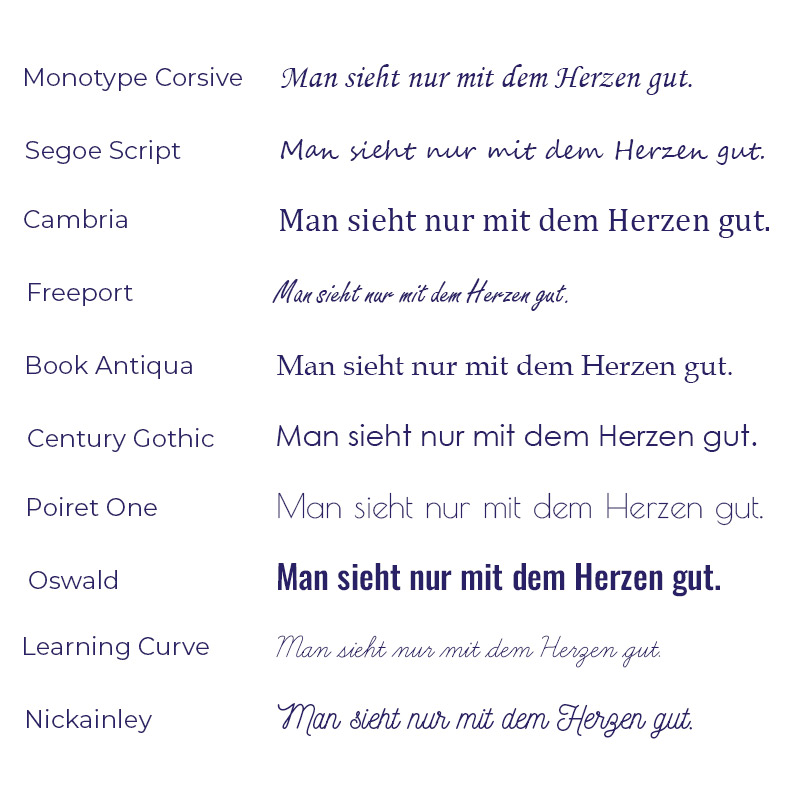 WELCHE SCHRIFTARTEN KÖNNEN SIE BEI UNS WÄHLEN?