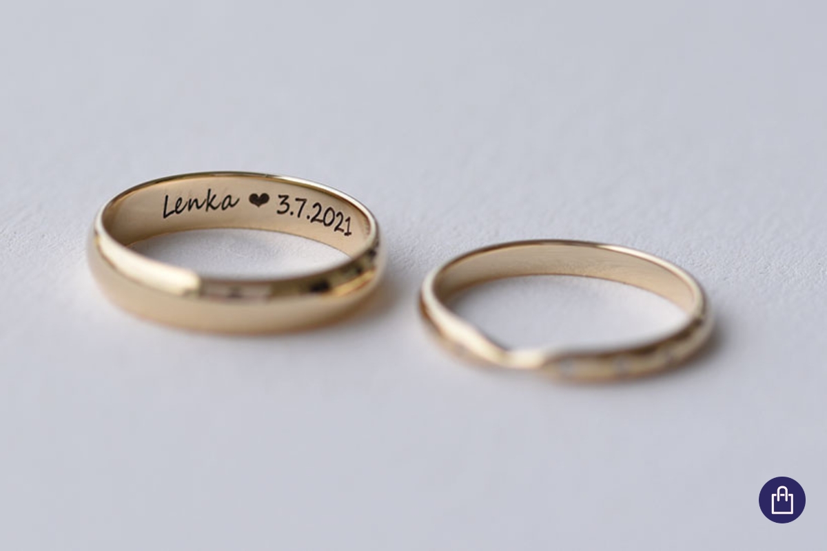 Aufgrund der eher robust wirkenden Schrift sollten Sie breitere Ringe von etwa 5 mm und mehr auswählen. Die Inschrift wird so ihren Raum haben und Sie werden sie leicht entziffern können. Am besten wirkt die Schrift auf schlichten Ringen mit Solitär, aber weil Geschmack individuell ist, scheuen Sie sich nicht auch mit ausgefalleneren Modellen zu experimentieren.